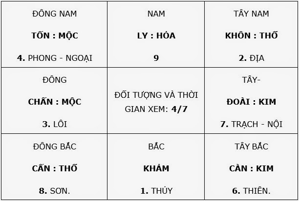 | Trên | Cấn | Đứng yên |
